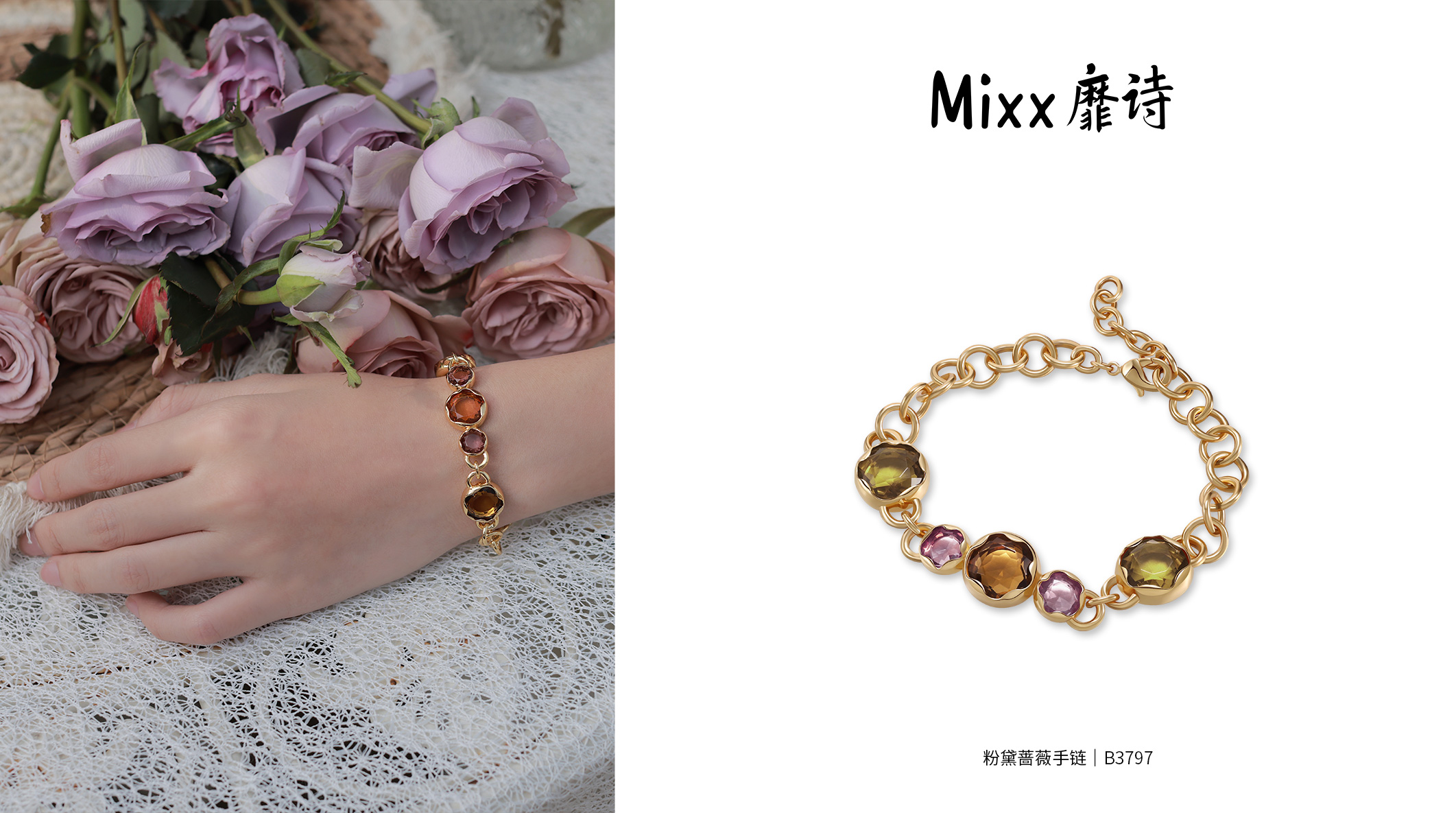 Mixx靡诗诞生于2008年,为香港天马首饰有限公司旗下品牌,总公司位于广州番禺,有着20年珠宝OEM&ODM生产经验,集研发、设计、生产、售后为一体,获取国际ISO9000及SA8000质量及社会系统资质认证,为世界各地品牌客户提供完善的一体化服务。设计团队通过设计传递“Life Color Life Style 生而彩色 品位生活”的品牌理念,用色彩搭配美学表达情感,展现女性自信,品位生活的态度。