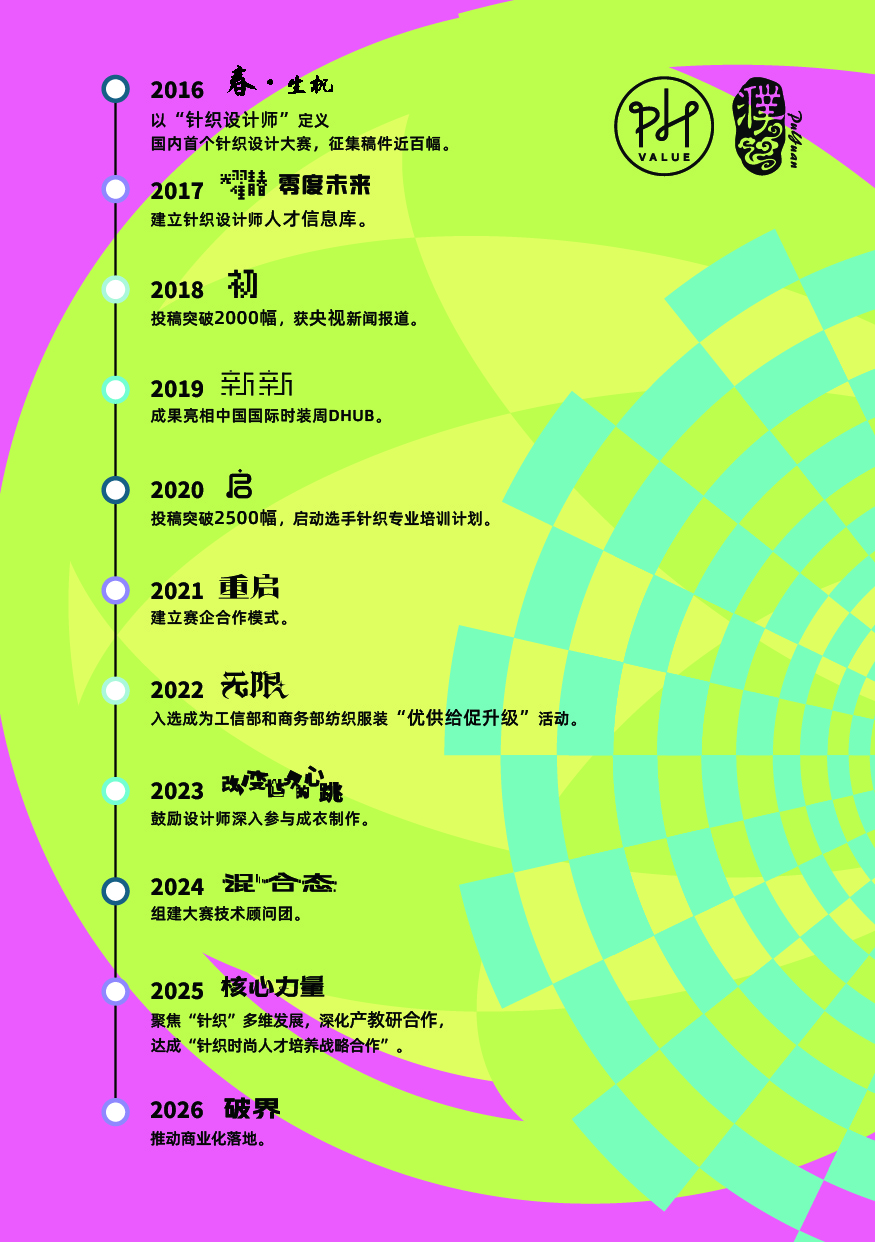 “濮院杯”PH Value中国针织设计师大赛自2016年创办以来,已成功举办十届。在中国纺织工业联合会的指导下,在主办方中国针织工业协会、中国国际贸易促进委员会纺织行业分会及濮院时尚产业发展集团有限公司多方共同培育下,大赛始终秉持“引领设计、鼓励创新、联动校企、服务集群”的宗旨,持续引领中国针织设计潮流,塑造针织设计师标杆。大赛强调设计与工艺融合,推动创意与市场接轨,贯通产学研用环节,逐步构建起健康的针织设计生态,为行业注入创新动力,积极助推针织产业时尚化转型。