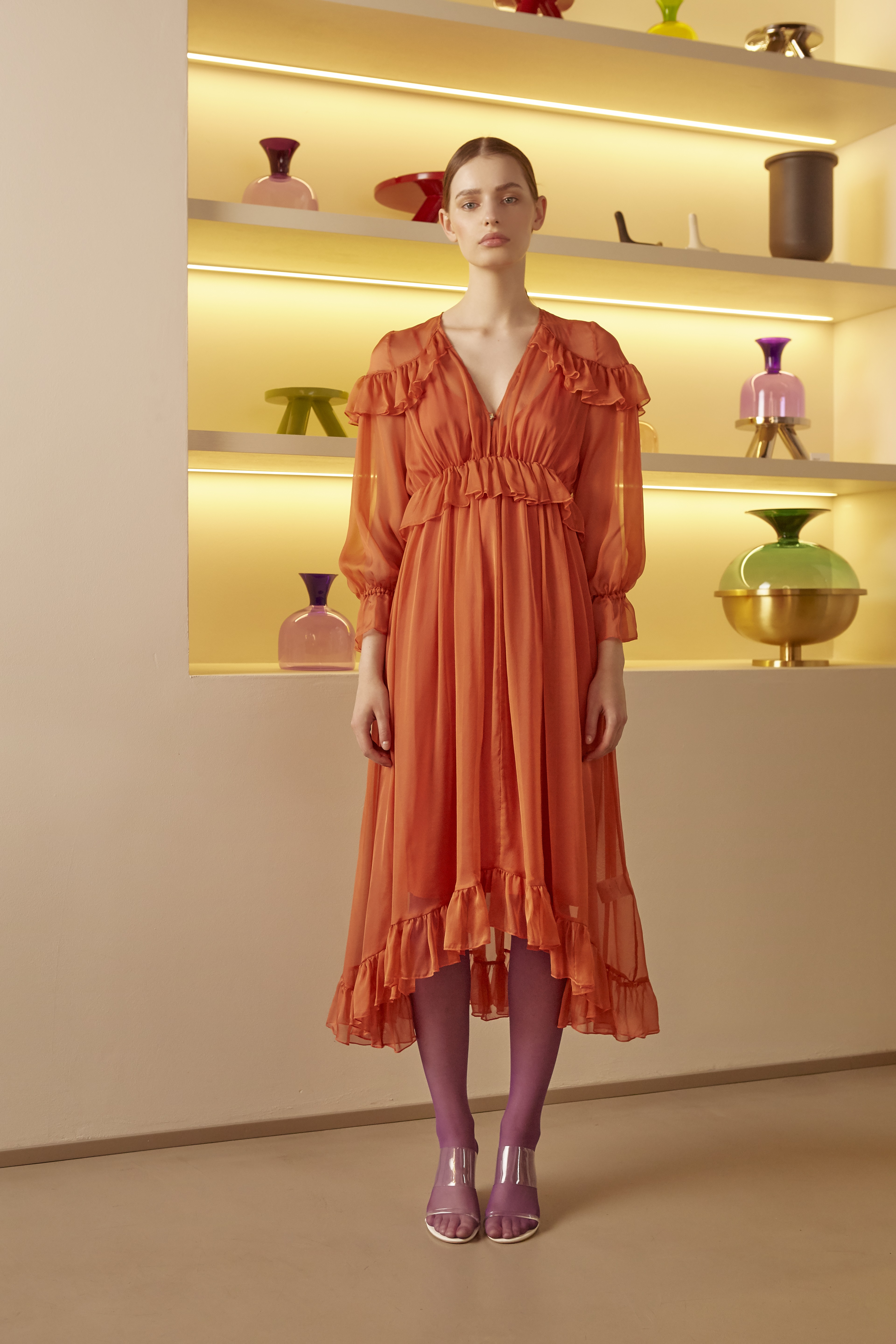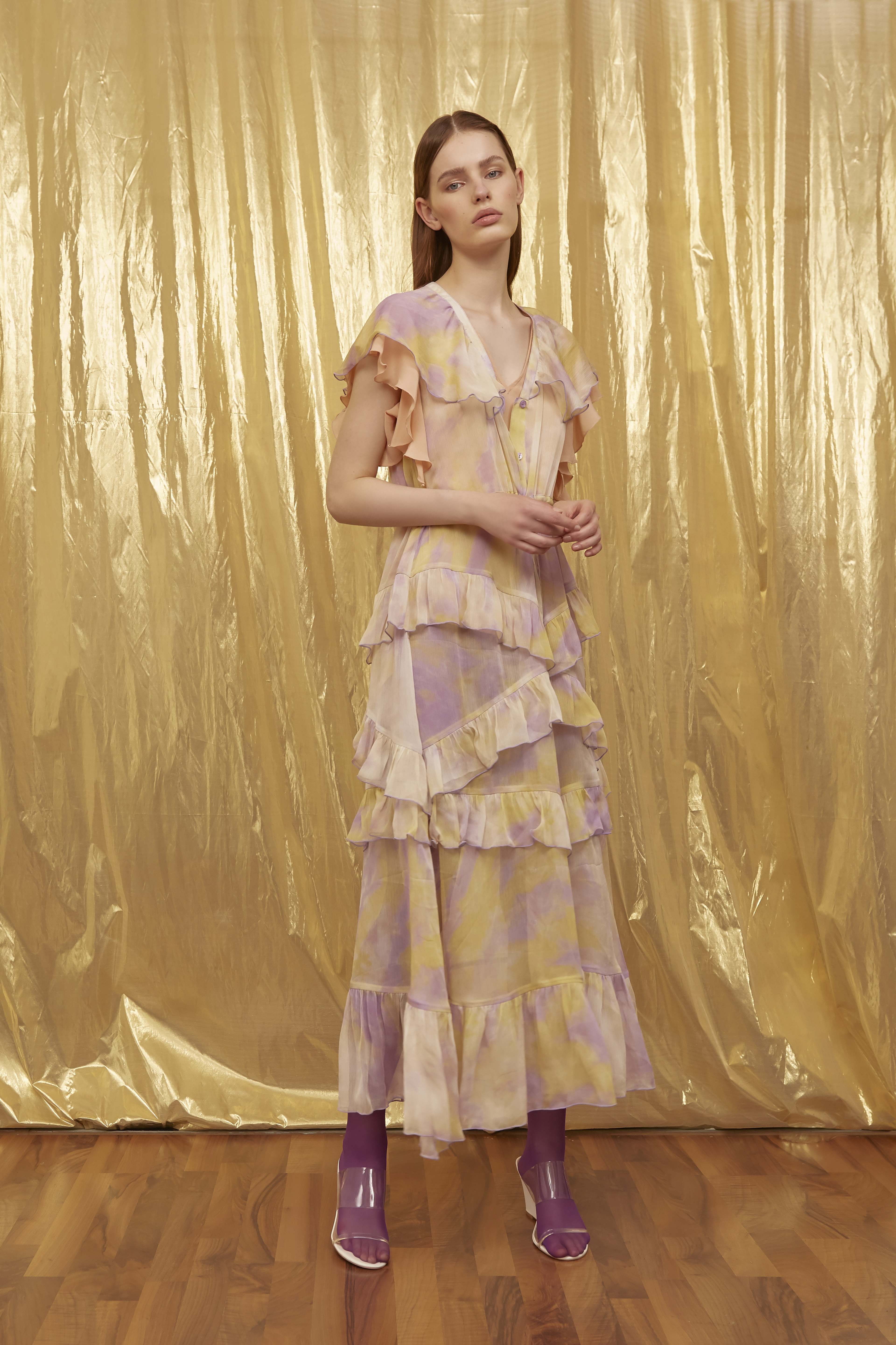 这一季中,ISABELLE BLANCHE受到 “千禧一代”的启发,这一代人意识到他们对世界的影响以及与自然联系的必要性。ISABELLE BLANCHE试图将两种截然相反的观点——人工技术和想要与地球所创造的东西分离与融合的冲动——结合起来:以讽刺的方式,采用奢华的色彩、迷幻印花和带荧光色的镶边,改变了荧光有趣的巴洛克时代,把20世纪70年代的经典嬉皮士带到科技革命。