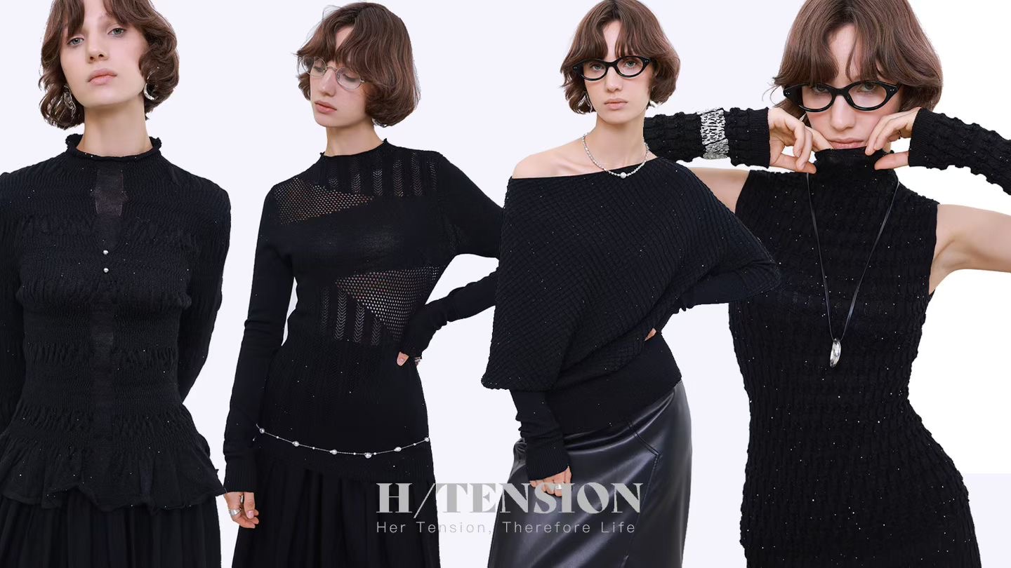 It articulates a calm yet tender aesthetic, exploring the subtle tension between garment and body, and seeking equilibrium between rationality and emotion. By selecting noble natural yarns—wool, cashmere, and mulberry silk—and employing refined knitwear craftsmanship, H/Tension creates garments defined by relaxed precision and sophisticated texture. Dedicated to contemporary women, the brand offers an effortless yet elevated wardrobe, moving seamlessly between the ordinary and the exceptional, and establishing a distinct language of knitwear.