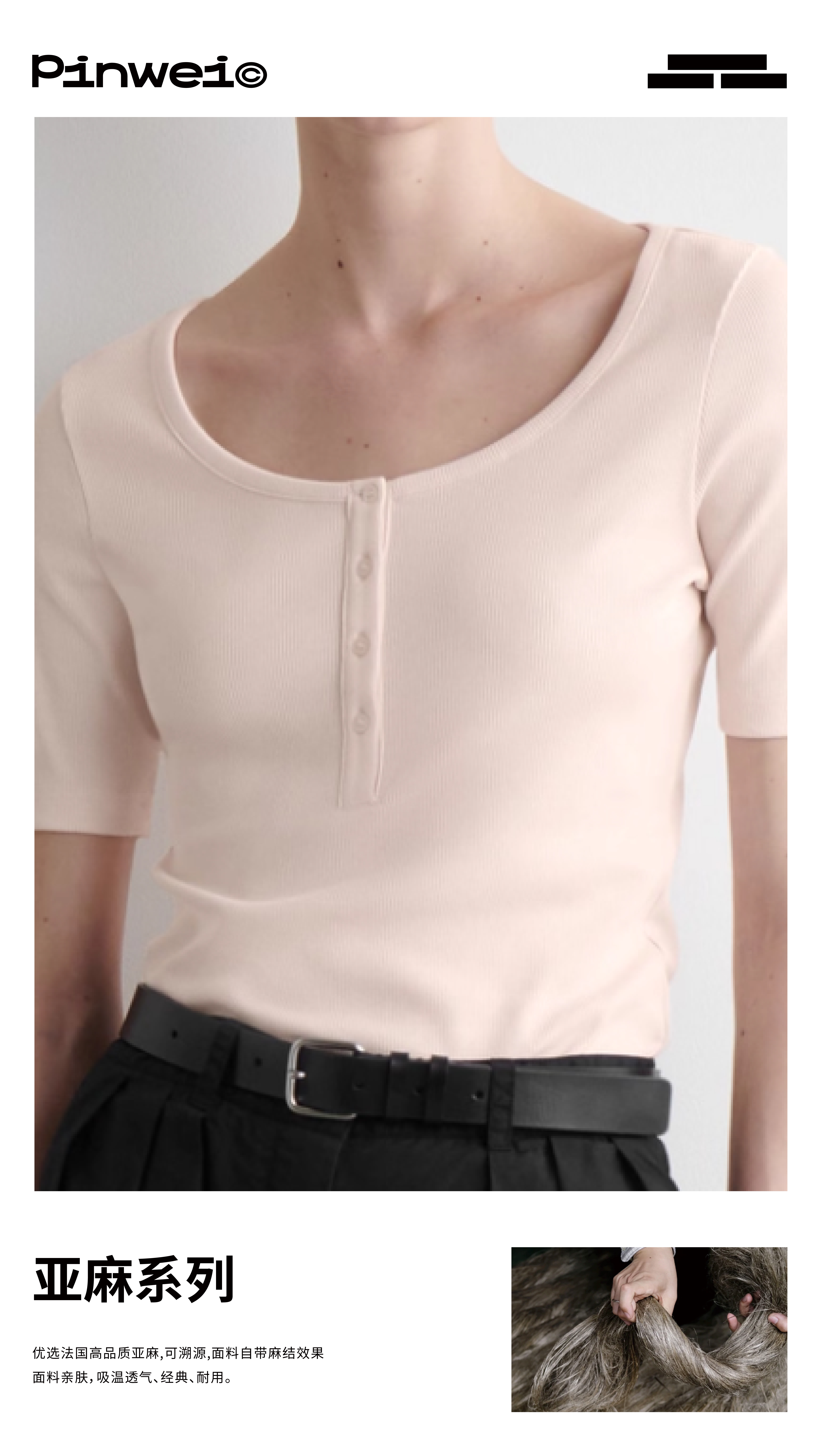 广州市品蔚纺织有限公司产品开发以羊毛、醋酸、匹马棉、兰精天丝、兰精莫代尔和桑蚕丝为主的极简女装以及轻运动系列。