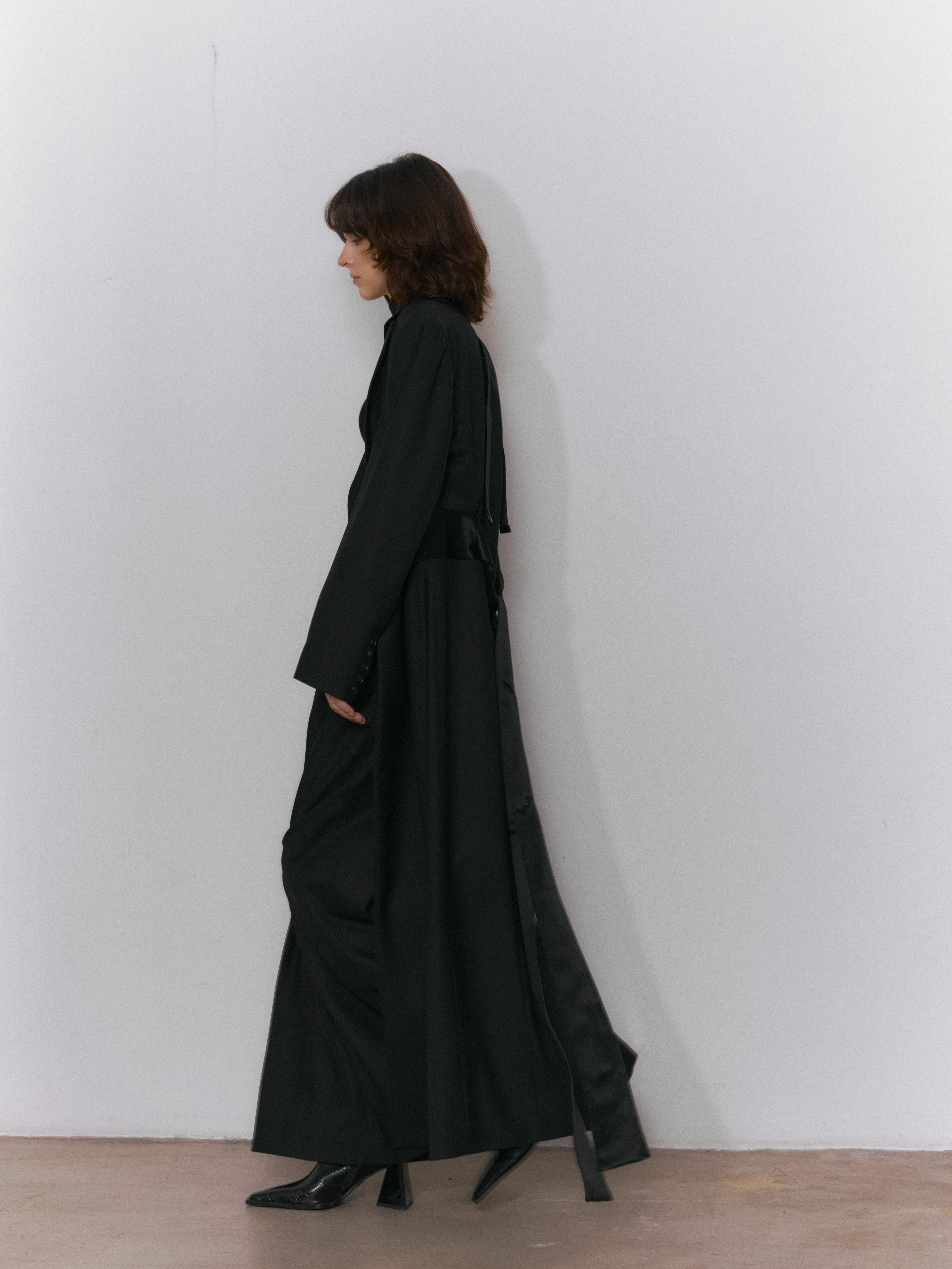 ODE TO THE TURBID OCEAN名称源自英国浪漫主义诗人Percy Bysshe Shelley的诗歌《Ode to the West Wind》如同诗人在诗歌中对“西风”的赞颂一般,在浑浊的世界中试图超越平凡,保持纯粹的自我。品牌风格以结构性设计为主,通过裁剪充分展现出面料本身的美感与质感,统一服装上的视觉完整性,将锋利的轮廓与面料的柔软完美结合,专注于服装与面料本身。